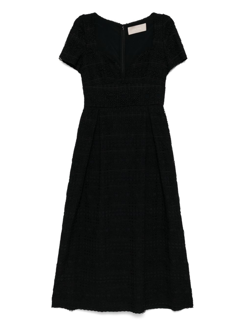 Macrame midi dress Highlights - Black - Concealed rear hook and zip fastening - V-neck - Short sleeves - Macrame detailing Made in Italy Composition Polyester 100% SIZE & FIT Model measurements Height 5 ft 10 in(1.78 m) Bust/Chest 29.92 in(76 cm) Hips 34.64 in(88 cm) Waist 24.8 in(63 cm) FittingInformation Designed for a close fit at the chest and waist with a loose fit at the hip Made from a midweight non-stretch fabric Washing instructions Read Manufacturer Guidelines