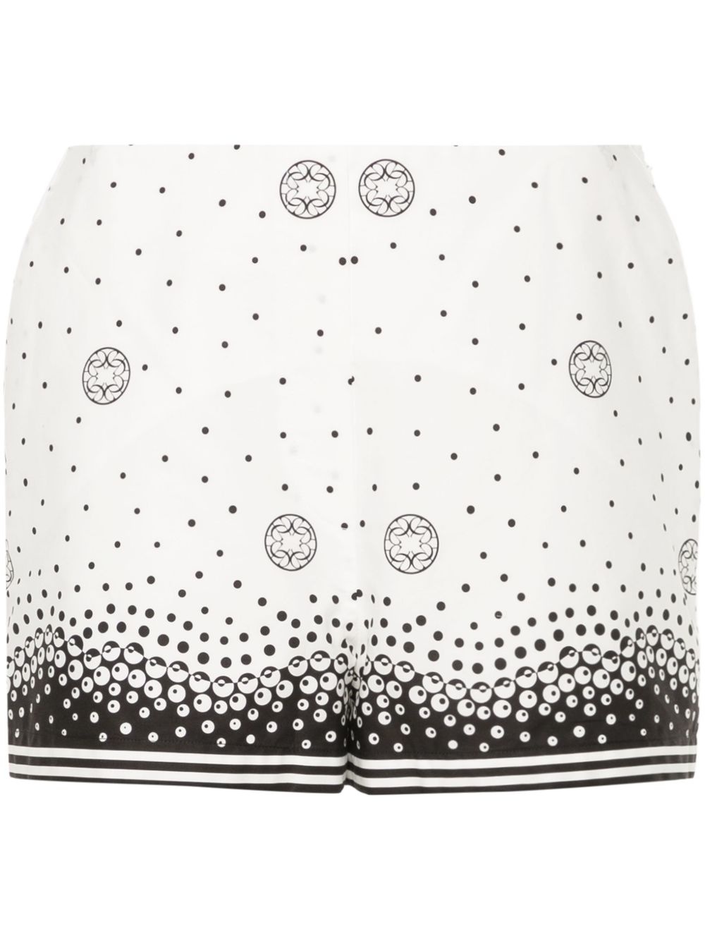 monogram-print cotton shorts Highlights - White/black - Cotton - Poplin texture - Polka dot and monogram print - Dart detailing - Two diagonal pockets to the sides - Thigh-length - Full lining - Concealed side zip fastening Imported Composition Cotton 100% SIZE & FIT Model measurements Height 5 ft 11 in(1.8 m) Bust/Chest 32.67 in(83 cm) Hips 36.22 in(92 cm) Waist 24.4 in(62 cm) FittingInformation Designed for a slim fit that sits just away from the body offering a close yet comfortable fit Made from a midweight non-stretch fabric This piece fits true to size – take your usual size