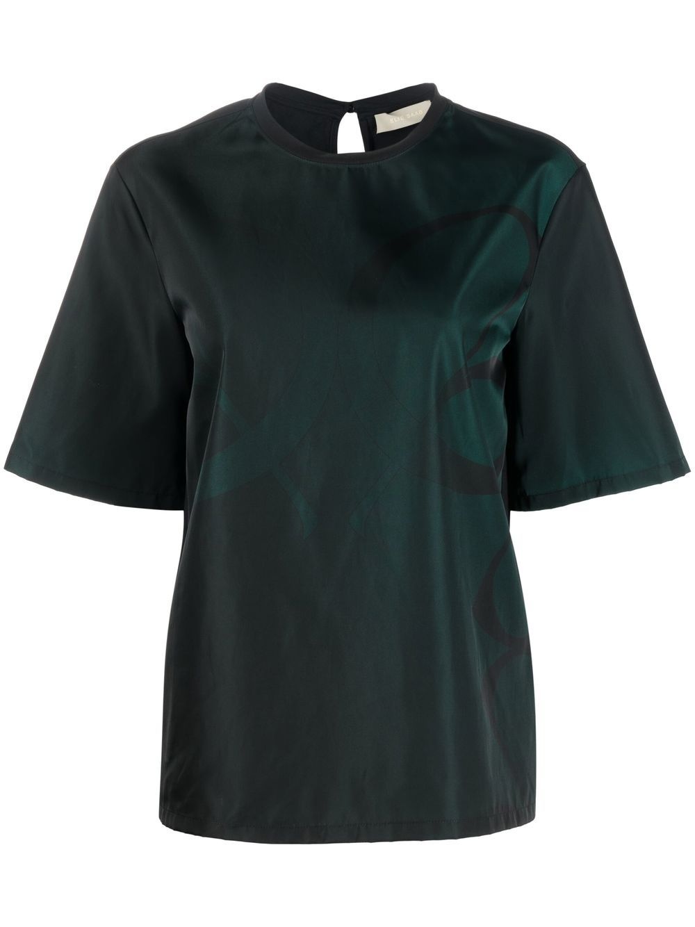 monogram-print T-shirt Elie Saab's T-shirt is subtly accented with an abstract monogram in dark teal hues that lend a subtle touch of colour to the black panels. The loose-fitting silhouette adds to the laidback feel. Made in Italy Composition Polyamide 100% SIZE & FIT Model measurements Height 5 ft 11 in(1.8 m) Bust/Chest 31.49 in(80 cm) Hips 36.61 in(93 cm) Waist 24.4 in(62 cm) FittingInformation This piece fits true to size. We recommend you get your regular size Cut for a loose fit Made with a mid-weight fabric