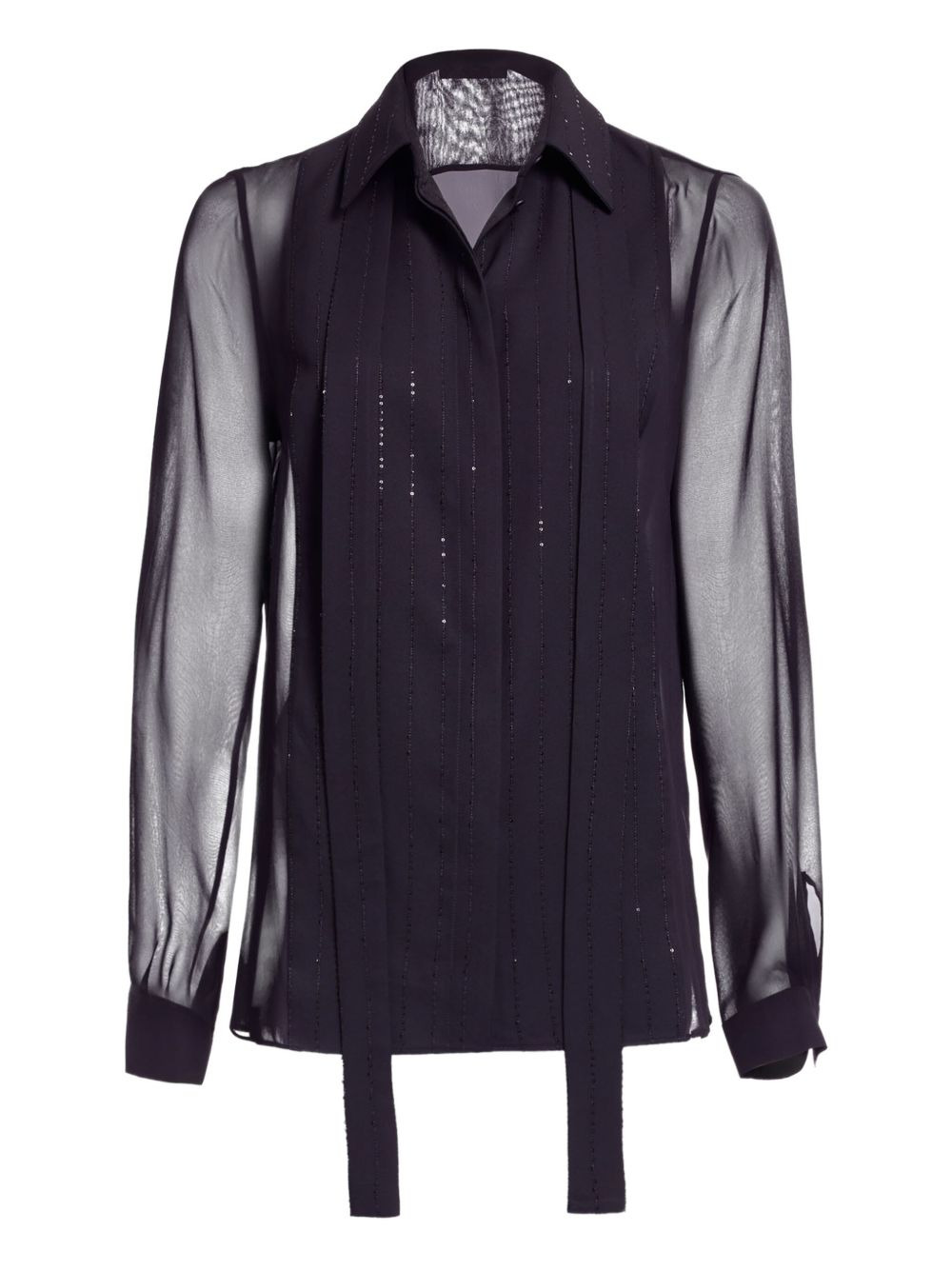 pinstriped silk shirt Highlights - Black - Button fastening - Point collar Made in Italy Composition Viscose 77%, Silk 19%, Polyester 4% Washing instructions Read Manufacturer Guidelines