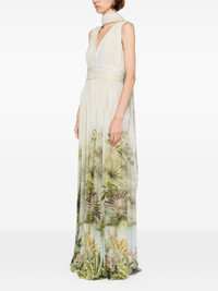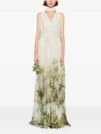printed chiffon long dress Highlights - Light green - Concealed rear hook and zip fastening - V-neck - Sleeveless - Attached scarf Imported Composition Viscose 67%, Silk 33% SIZE & FIT Model measurements Height 5 ft 10 in(1.78 m) Bust/Chest 29.92 in(76 cm) Hips 34.64 in(88 cm) Waist 24.8 in(63 cm) FittingInformation Designed for a close fit at the chest with a loose fit over the waist and hips Particularly long in length; consider your own measurements Made from a midweight non-stretch fabric Washing instructions Dry Clean Only