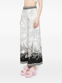 printed cotton pants Highlights - White/multicolour - Front hook and zip fastening - Two side inset pockets Imported Composition Organic Cotton 100% SIZE & FIT Model measurements Height 5 ft 10 in(1.78 m) Bust/Chest 32.67 in(83 cm) Hips 37 in(94 cm) Waist 25.59 in(65 cm) FittingInformation Designed with a wide-leg cut, these trousers allow for a close fit at the waist and offer a loose and roomy fit over the leg Made from a midweight non-stretch fabric