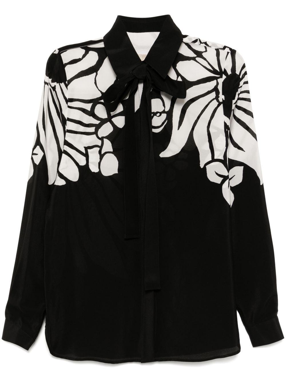 printed silk shirt Highlights - Black/white - Front button fastening - Buttoned cuffs - Semi-sheer construction Imported Composition Silk 100%