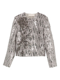 sequin-embellished jacket Highlights - Silver - Sequin embellishment - Button fastening - Round neck - Long sleeves Imported Composition Polyester 56%, Silk 41%, Spandex/Elastane 3% Washing instructions Read Manufacturer Guidelines