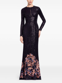 sequin-embellished maxi dress Highlights - Black/multicolor - Sequin embellishment - Long sleeves - Round neck - Rear zip fastening Imported Composition Polyester 47%, Silk 44%, Rayon 9% Washing instructions Read Manufacturer Guidelines