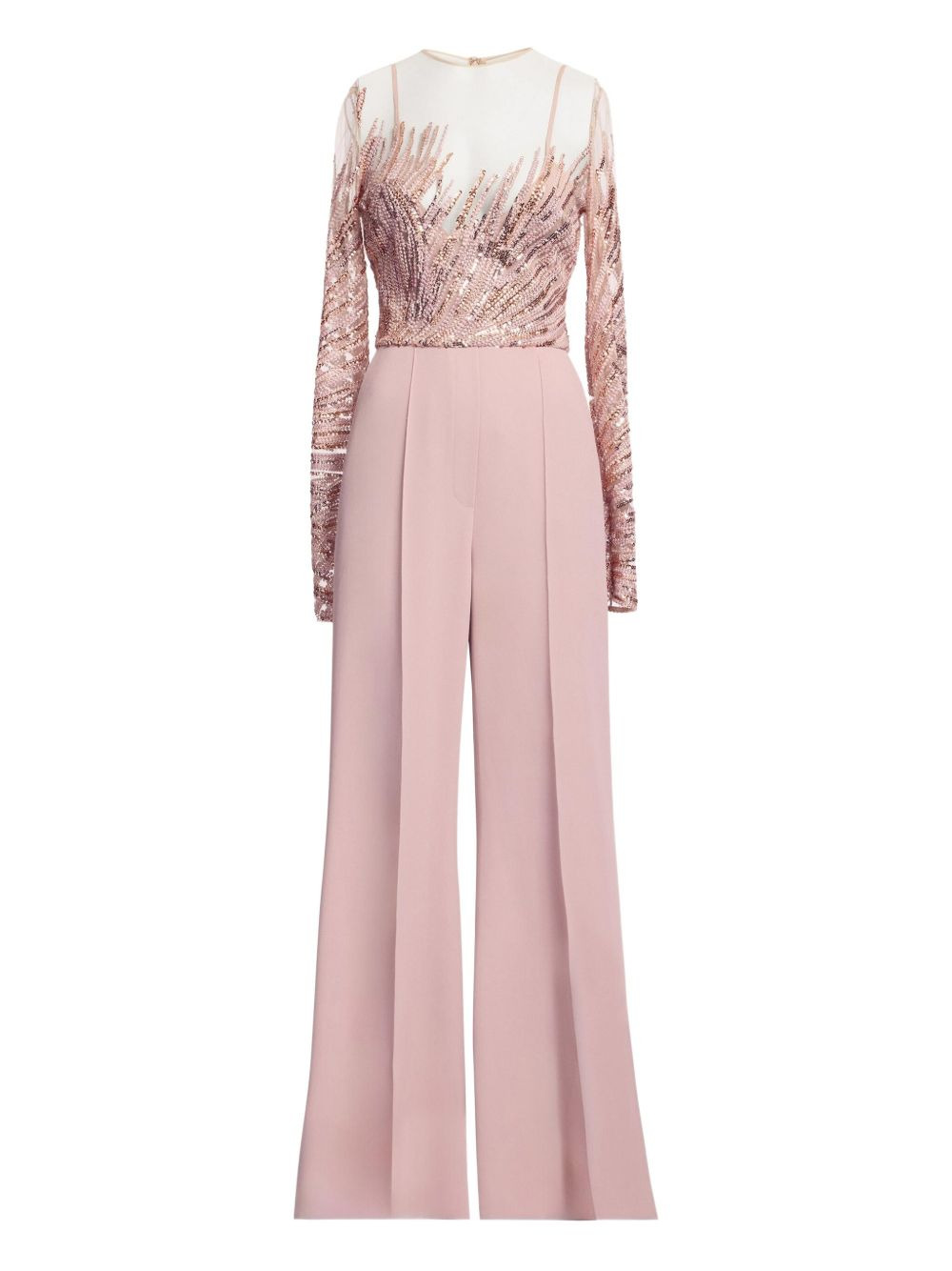 sequin-embellished tulle embroidered jumpsuit Highlights - Shadow rose - Sequin embellishment - Tulle detail - Embroidered detail - Long sleeves - Cady construction Imported Composition Viscose 46%, Polyamide 37%, Silk 17% Washing instructions Read Manufacturer Guidelines