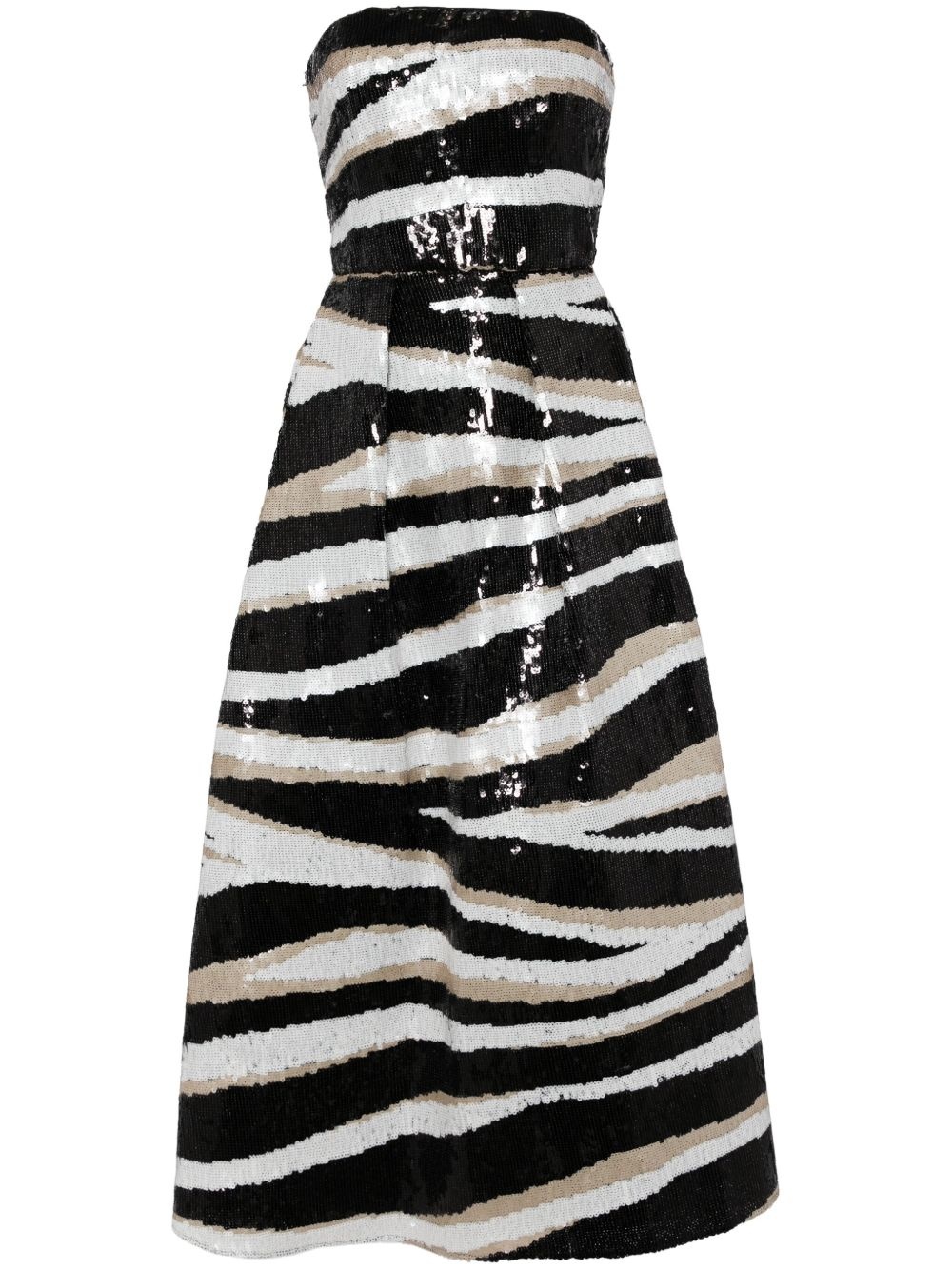 strapless sequin gown Highlights - Black/white - Silk - Sequin embellishment - Animal print - Rear zip fastening - Strapless - Full skirt - Silk lining - Ankle-length Imported Composition Outer: Polyester 30%, Polyamide 30%, Silk 30%, Nylon 6%, Rayon 4% Lining: Silk 100% SIZE & FIT Model measurements Height 5 ft 10 in(1.77 m) Bust/Chest 31.49 in(80 cm) Hips 35.43 in(90 cm) Waist 25.19 in(64 cm) FittingInformation Designed for a close fit at the chest with a loose fit over the waist and hips Made from a heavyweight non-stretch fabric This piece fits true to size – take your usual size