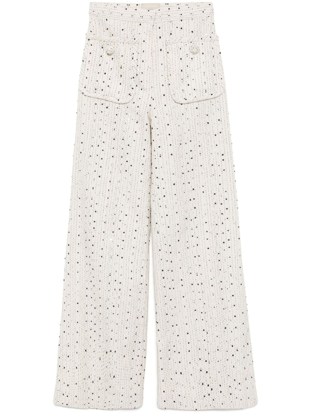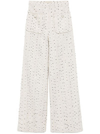tweed pants Highlights - White/black - Front hook and zip fastening - Two front patch pockets - Sequin embellishment Imported Composition Outer: Polyester 29%, Acetate 29%, Cotton 29%, Viscose 10%, Silk 3% Lining: Silk 100% SIZE & FIT Model measurements Height 5 ft 10 in(1.78 m) Bust/Chest 32.67 in(83 cm) Hips 37 in(94 cm) Waist 25.59 in(65 cm) FittingInformation Designed with a wide-leg cut, these trousers allow for a close fit at the waist and offer a loose and roomy fit over the leg Made from a midweight non-stretch fabric