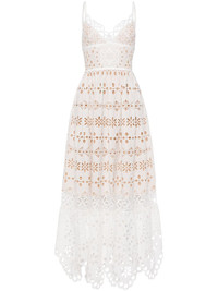 V-neck embroidered maxi dress Highlights - Ivory white - Cotton-silk blend - Embroidered design - V-neck - Sleeveless - Spaghetti straps - Square open back - Scallop hem - Partial lining - Concealed rear zip fastening Imported Composition Cotton 75%, Silk 25%
