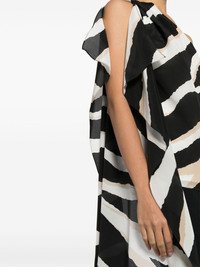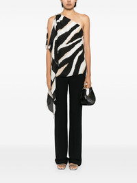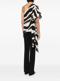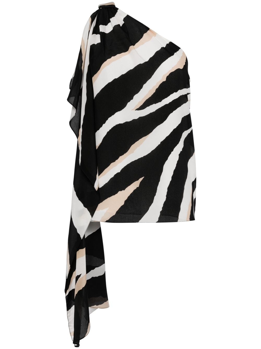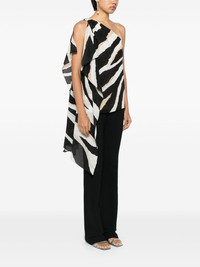 Zebra-Print One-Shoulder Cape Maxi Top black/white