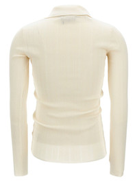 chain-detail ribbed sweater Highlights - Off-white - Ribbed pattern - V-neckline - Long sleeves - Chain detail Made in Italy Composition Lyocell 64%, Nylon 20%, Silk 16% Washing instructions Read Manufacturer Guidelines