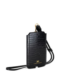 crocodile-print phone case Highlights - Black - Faux leather - Crocodile print texture - Lanyard strap - Gold-tone logo detail Imported Composition Outer: Polyurethane 60%, Polyester 40% SIZE & FIT Measurement DEPTH 0.59 in(1.5 cm) HEIGHT 6.1 in(15.5 cm) WIDTH 4.33 in(11 cm)