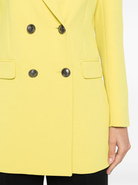 double-breasted blazer Highlights - Cedro yellow - Crepe texture - Peak lapels - Shoulder pads - Faux pocket detail to the chest - Long sleeves with buttoned cuffs - Logo-embossed buttons - Dart detailing - Two front flap pockets - Central rear vent - Full logo-jacquard lining - Straight hem - Double-breasted button fastening Made in Italy Composition Outer: Polyester 100% Lining: Polyester 100% SIZE & FIT Model measurements Height 5 ft 10 in(1.78 m) Bust/Chest 33.46 in(85 cm) Hips 36.22 in(92 cm) Waist 23.22 in(59 cm) FittingInformation Designed for a slim fit that sits just away from the body offering a close yet comfortable fit The internal shoulder pads offer a structured shape Made from a midweight non-stretch fabric This piece fits true to size – take your usual size Washing instructions Dry Clean Only