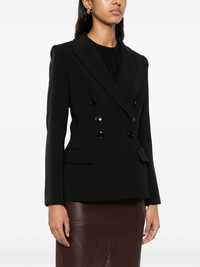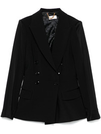 double-breasted blazer Highlights - Black - Double-breasted button fastening - Central rear vent - Two front flap pockets - Shoulder pads Made in Italy Composition Outer: Polyester 95%, Acetate 82%, Viscose 18%, Elastane 5% Lining: Polyester 92%, Elastane 8% SIZE & FIT Model measurements Height 5 ft 9 in(1.76 m) Bust/Chest 31.1 in(79 cm) Hips 36.61 in(93 cm) Waist 24.8 in(63 cm) FittingInformation Designed for a slim fit that sits just away from the body offering a close yet comfortable fit The internal shoulder pads offer a structured shape Made from a midweight stretch fabric, this piece offers elasticity and flexibility when worn Washing instructions Hand Wash