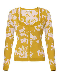 floral-jacquard cardigan Highlights - Yellow - Floral jacquard - Snap-button front - Long sleeves - Matching bra Made in Italy Composition Viscose 83%, Elastane 17% Washing instructions Read Manufacturer Guidelines