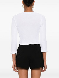 logo-buttons cardigan Highlights - White - Front button fastening - V-neck - Three-quarter length sleeves - Ruffled trim Made in Italy Composition Viscose 94%, Polyester 6% SIZE & FIT Model measurements Height 5 ft 10 in(1.77 m) Bust/Chest 33.07 in(84 cm) Hips 37 in(94 cm) Waist 24.8 in(63 cm) FittingInformation Designed for a close fit throughout Made with a midweight knit, this piece offers some stretch Washing instructions Hand Wash