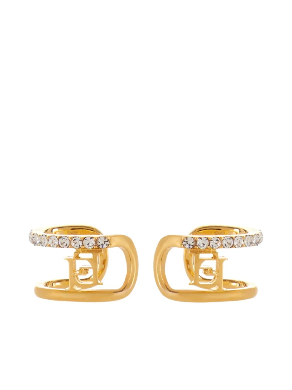 logo-rhinestone ear cuffs Highlights - Gold - Logo detail - Rhinestone embellishment - Ear cuff design - Double bar - These earrings come as a pair. Made in Italy