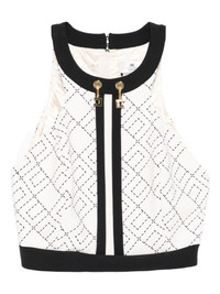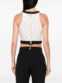 monogram-pattern halterneck top Highlights - White/black - Monogram pattern - Halterneck - Zip fastening - Contrasting trim - Gold-tone hardware Made in Italy Composition Outer: Polyester 96%, Spandex/Elastane 4% Lining: Polyester 92%, Spandex/Elastane 8% SIZE & FIT Model measurements Height 5 ft 10 in(1.78 m) Bust/Chest 33.46 in(85 cm) Hips 36.22 in(92 cm) Waist 23.22 in(59 cm) Washing instructions Dry Clean Only