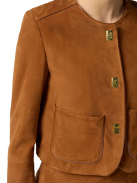patch-pocket turn-lock jacket Highlights - Brown - Suede - Round neckline - Patch pockets - Vinyl piping - Golden metal turn-lock closures Made in Italy Composition Suede 100% Washing instructions Read Manufacturer Guidelines