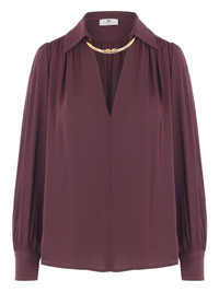 pleated-collar blouse Highlights - Burgundy - Pleated collar - Long sleeves - V-neckline - Gold-tone chain detail - Button cuffs Made in Italy Composition Viscose 100%