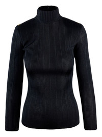 ribbed turtleneck sweater Highlights - Black - Ribbed texture - Turtleneck neck - Gold buttons - Long sleeves Imported Composition Viscose 100% Washing instructions Read Manufacturer Guidelines
