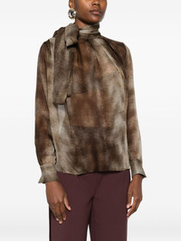 tie-neck silk top Highlights - Brown - Silk fabric - Tie neck - Long sleeves - Abstract print Made in Italy Composition Silk 100% SIZE & FIT Model measurements Height 5 ft 11 in(1.8 m) Bust/Chest 31.49 in(80 cm) Hips 36.61 in(93 cm) Waist 24.4 in(62 cm) Washing instructions Dry Clean Only