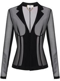 tulle jacket Highlights - Black - Hook and eye fastening - Corset style - Bustier-style neckline - Long sleeves Made in Italy Composition Polyamide 75%, Elastane 25% Washing instructions Read Manufacturer Guidelines