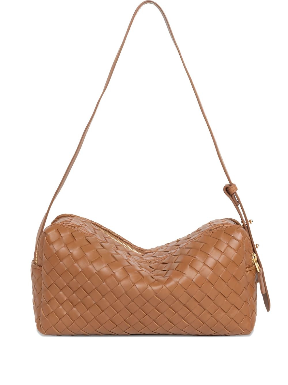 small Trousse woven-leather shoulder bag Highlights - Cognac - Woven leather - Zip fastening - Shoulder strap - Gold-tone hardware - Rectangular shape Made in Italy Composition Outer: Lamb Skin 100% SIZE & FIT Measurement DEPTH 4.33 in(11 cm) HEIGHT 5.11 in(13 cm) WIDTH 9.84 in(25 cm)