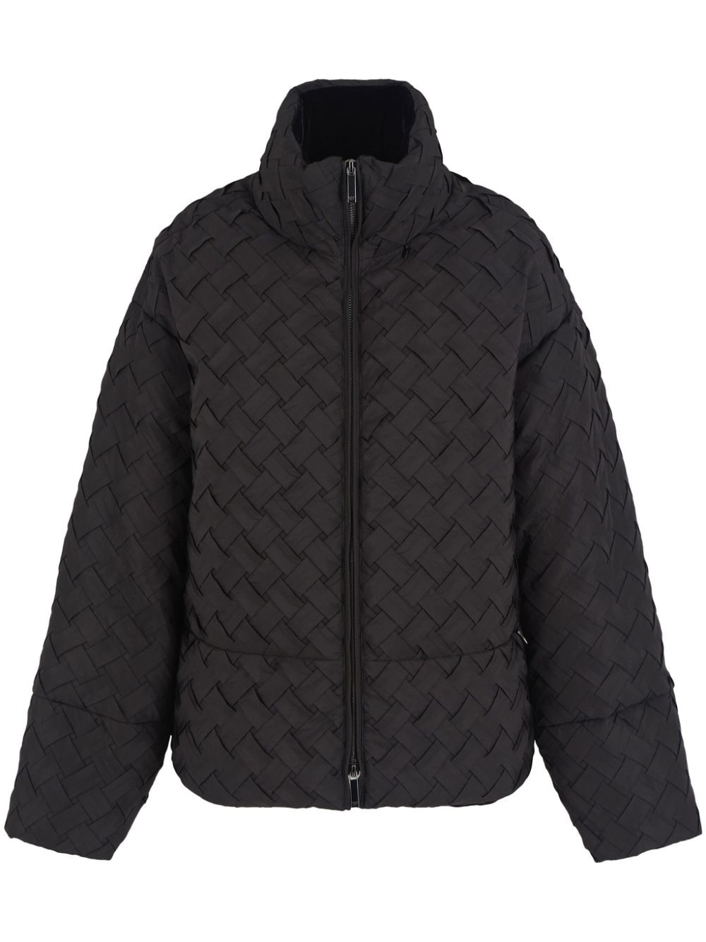 basket-weave high-neck jacket Highlights - Black - Basket weave - High neck - Front zip fastening - Long sleeves Imported Composition Polyester 100% SIZE & FIT FittingInformation Designed to be unstructured, offering a loose fit throughout Made from a padded non-stretch fabric, giving it no natural elasticity