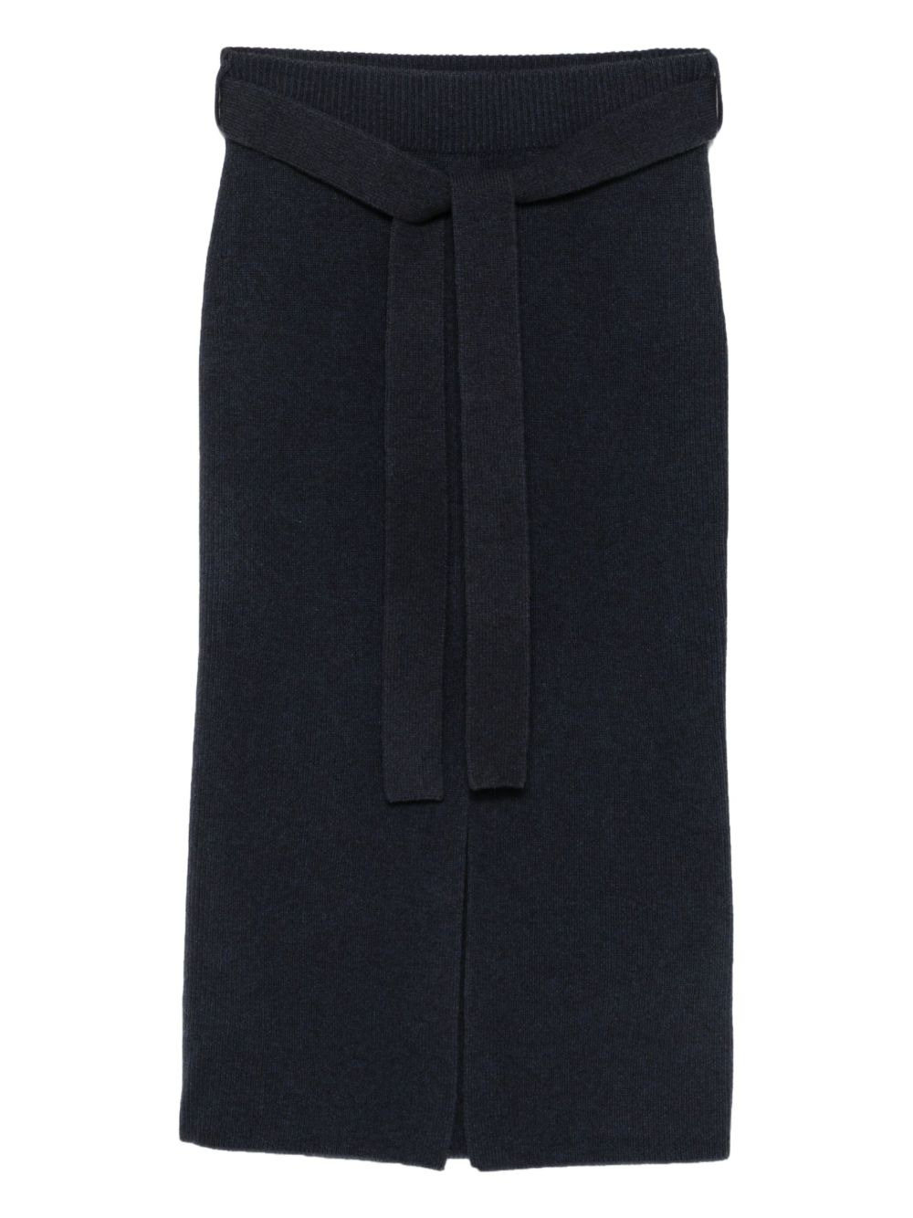 belted midi skirt Highlights - Navy blue - Ribbed knit - Fitted silhouette - Centre-back vent - Self-tie belt Imported Composition Virgin Wool 50%, Yak 50% Washing instructions Hand Wash