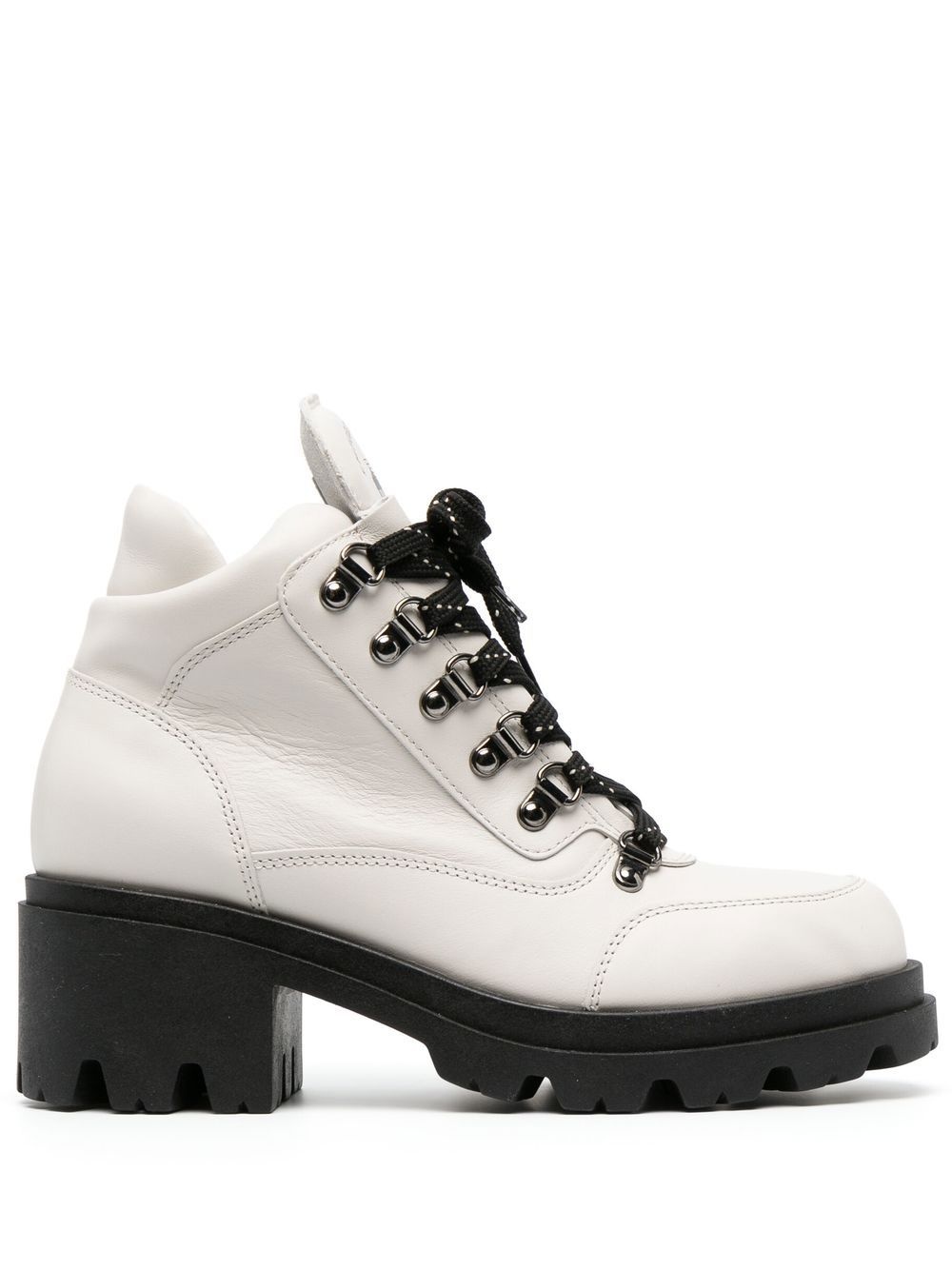 Chalet Collection 60mm hiking boots white/black calf leather logo-print tongue front lace-up fastening panelled design round toe low block heel ridged rubber sole Made in Italy Composition Lining: Calf Leather 100%, Fabric 100% Sole: Rubber 100% Outer: Calf Leather 100% SIZE & FIT Measurement HEEL 2.36 in(6 cm) HEIGHT 4.72 in(12 cm) Sole height 0.98 in(2.5 cm)