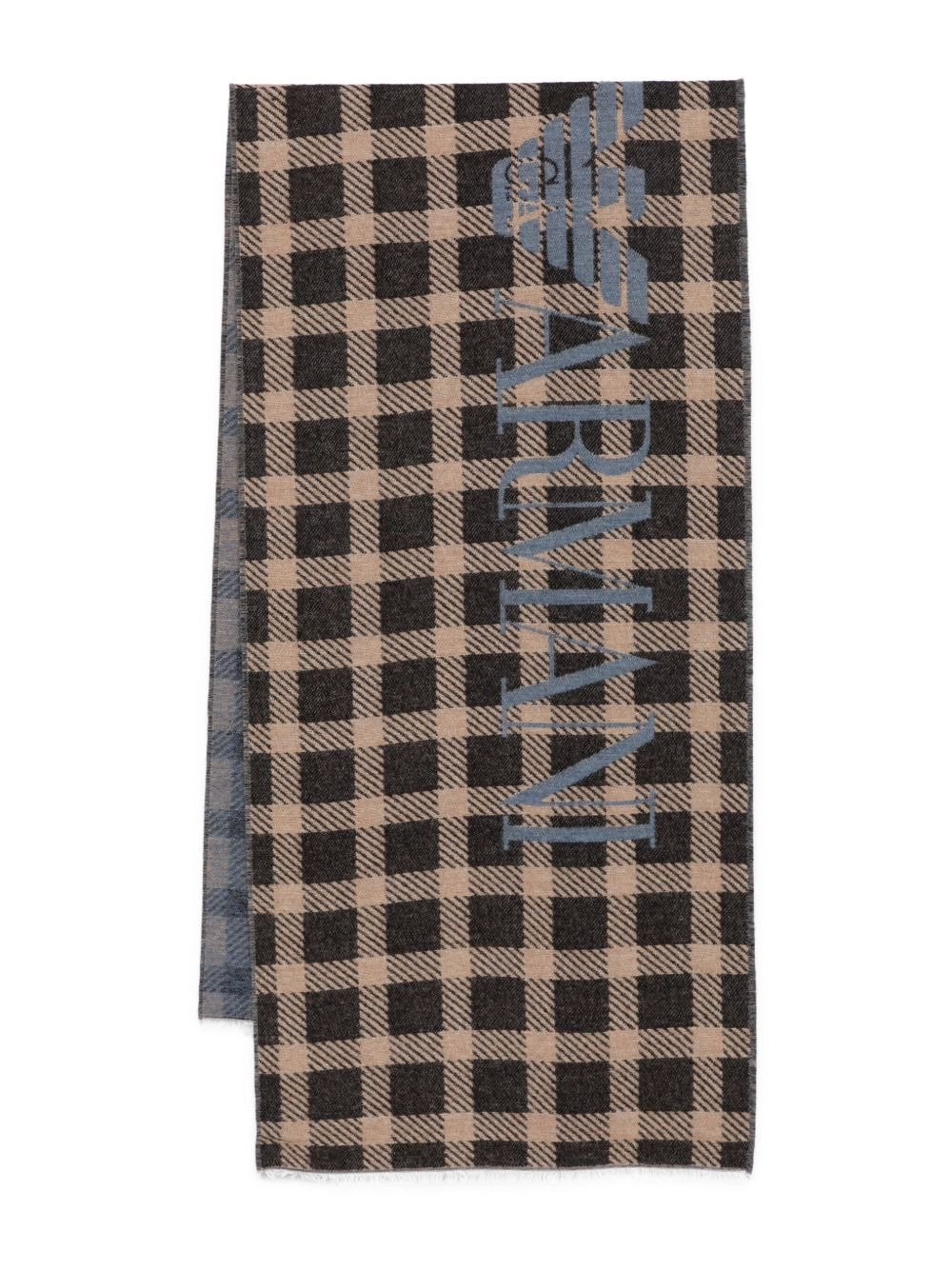 check-pattern logo scarf Highlights - Brown - Check pattern - Logo lettering - Frayed edges Imported Composition Acrylic 100%