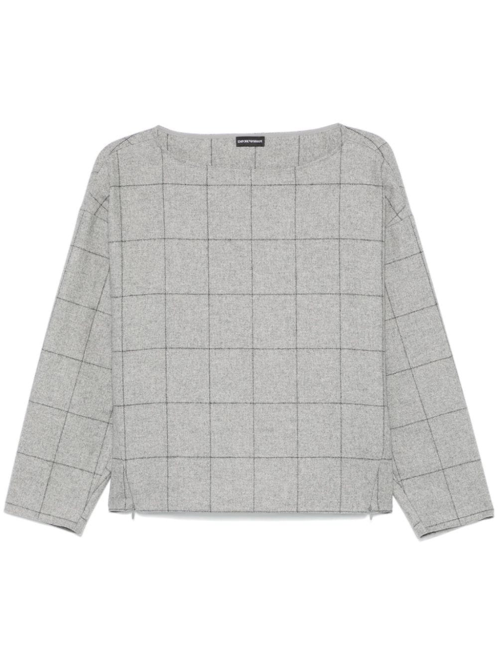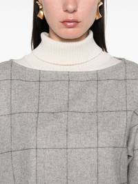 checked boat-neck sweater Highlights - Grey - Wool blend - Flannel - Melange effect - Check pattern - Boat neck - Side zip fastenings - Drop shoulder - Long sleeves - Straight hem Imported Composition Wool 60%, Polyester 29%, Polyamide 8%, other fibers 3% SIZE & FIT Model measurements Height 5 ft 10 in(1.78 m) Bust/Chest 33.46 in(85 cm) Hips 36.22 in(92 cm) Waist 23.22 in(59 cm) FittingInformation Designed to be unstructured, offering a loose fit throughout Made from a midweight non-stretch fabric