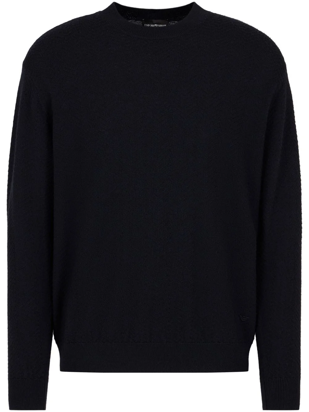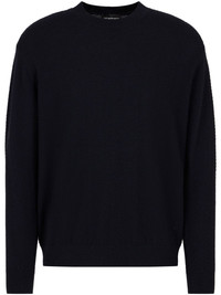 chevron-knit sweater Highlights - Navy blue - Virgin wool - Chevron knit - Ribbed band collar - Crew neck - Drop shoulder - Long sleeves - Ribbed cuffs and hem - Straight hem Imported Composition Virgin Wool 100%
