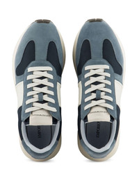 colour-block low-top sneakers Highlights - Steel blue/navy blue/white - Colour-block panelled design - Mesh detailing - Logo patch at the tongue - Round toe - Front lace-up fastening - Ridged rubber sole Imported Composition Polyester 100% SIZE & FIT Measurement HEEL 1.57 in(4 cm) Sole height 0.98 in(2.5 cm)