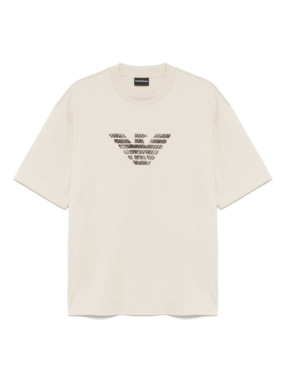 cotton T-shirt Highlights - Almond beige - Crew neck - Short sleeves - Embroidered logo to the front - Straight hem Imported Composition Cotton 100% SIZE & FIT Model measurements Height 6 ft 1 in(1.86 m) Bust/Chest 37.4 in(95 cm) Hips 36.22 in(92 cm) Waist 29.52 in(75 cm) FittingInformation Designed to be unstructured, offering a loose fit throughout Made from a midweight non-stretch fabric, this piece offers minimal elasticity when worn