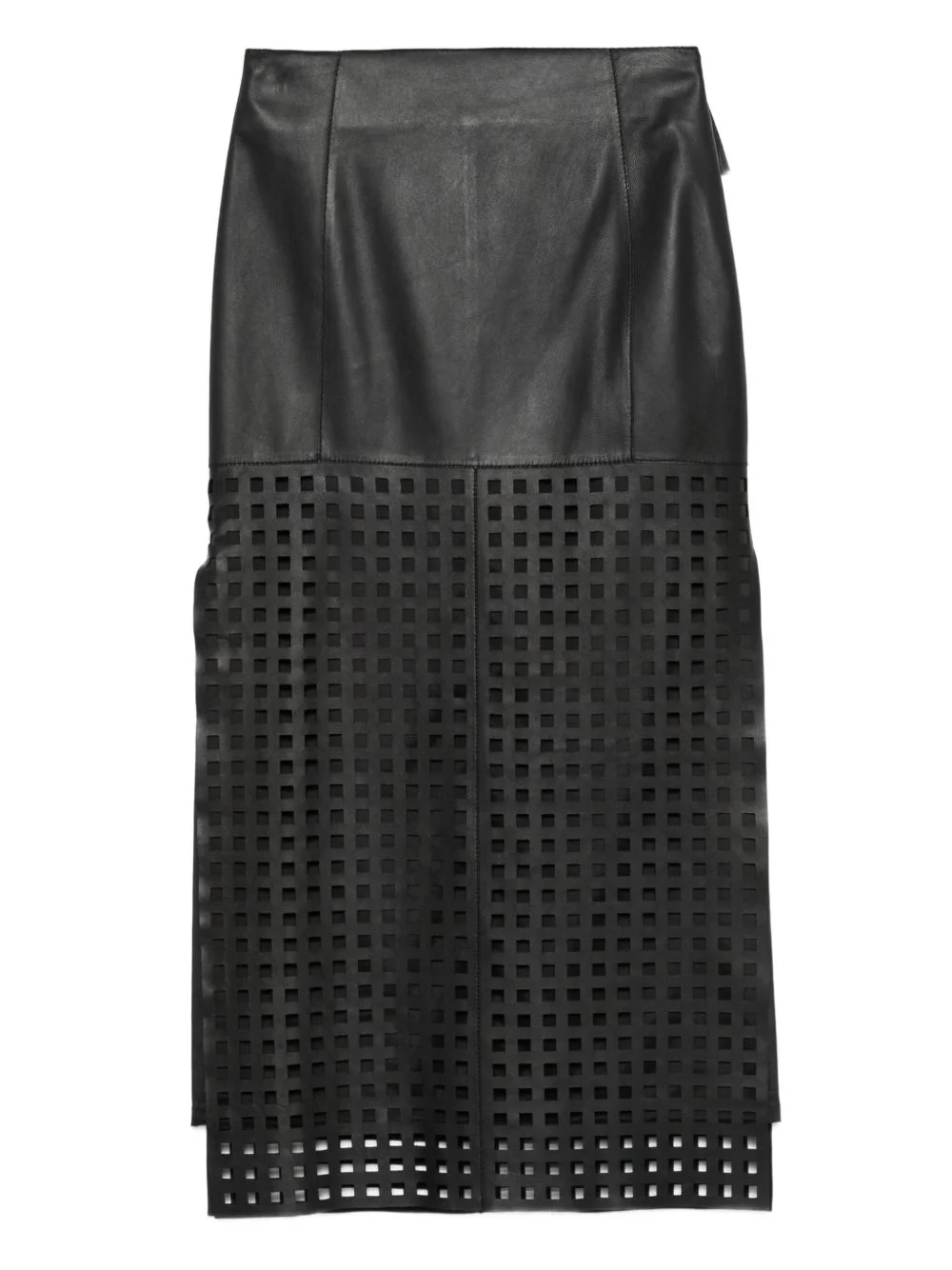 POLYGON CAPSULE COLLECTION MIDI SKIRT IN VEGETABLE-TANNED NAPPA LEATHER WITH LASER-CUT PERFORATIONS