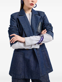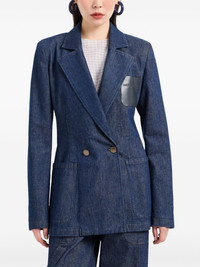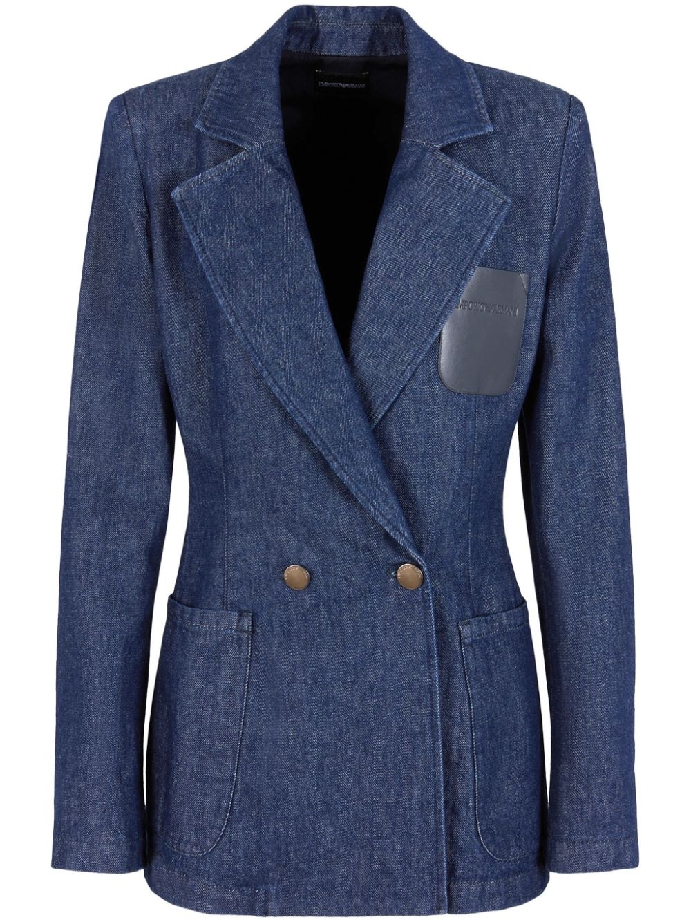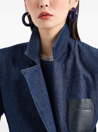 Double-breasted 11 oz denim blazer with logo leather pocket