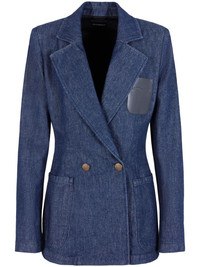 denim double-breasted blazer Highlights - Indigo blue - Cotton - Denim - Notched lapels - Double-breasted button fastening - Long sleeves - Chest patch pocket - Two front patch pockets - Straight hem Imported Composition Cotton 100%