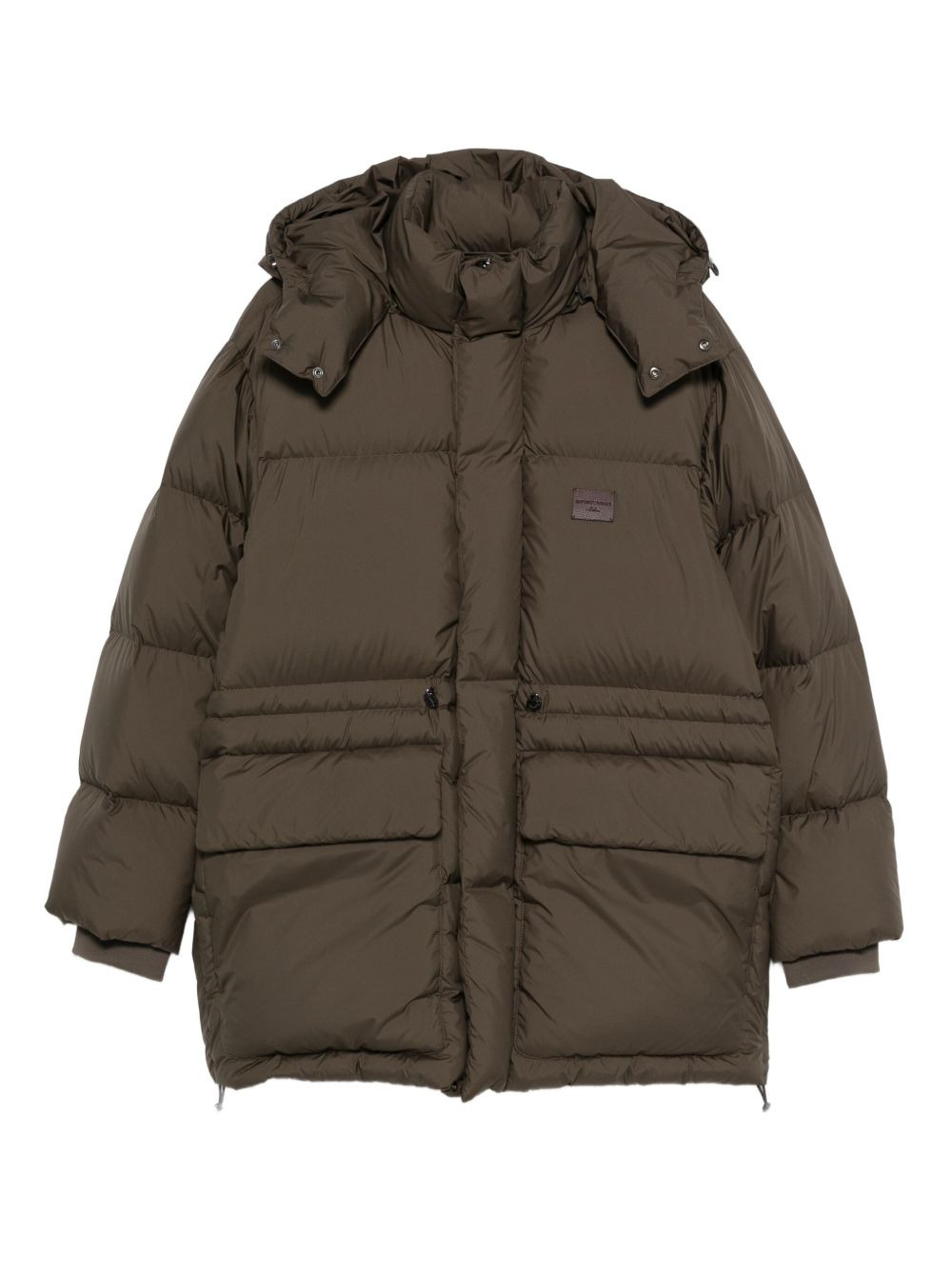 detachable-hood padded jacket Highlights - Dark green - Attached hood - Logo patch Imported Composition Fabric 100% SIZE & FIT Model measurements Height 6 ft 0 in(1.84 m) Bust/Chest 35.82 in(91 cm) Hips 37 in(94 cm) Waist 28.34 in(72 cm) Washing instructions Read Manufacturer Guidelines