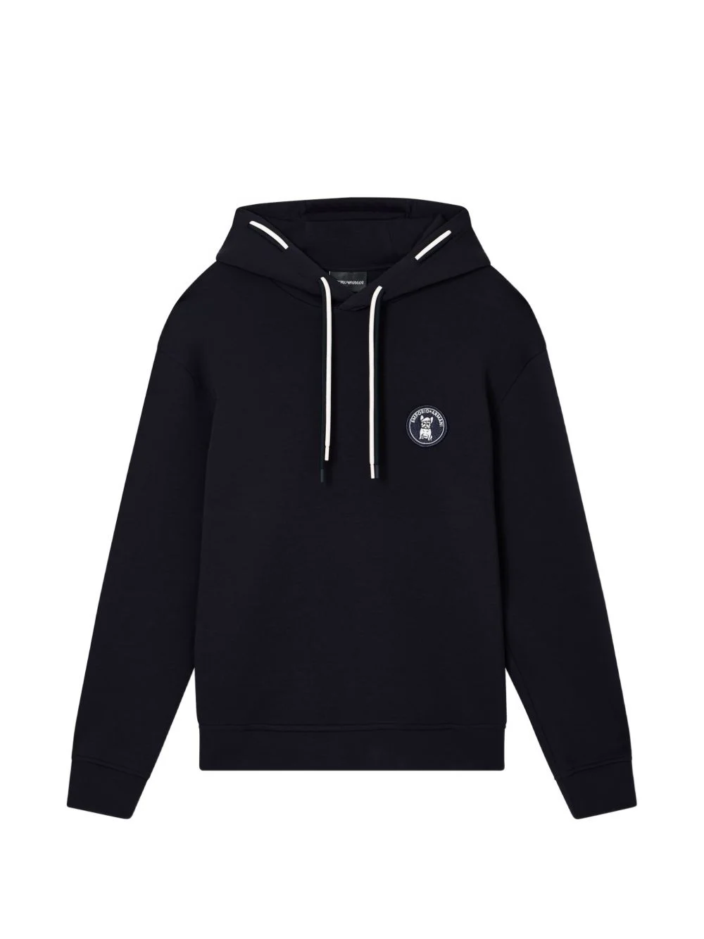 drawstring logo-patch hoodie Highlights - Navy blue - Drawstring hood - Logo patch - Ribbed hem - Ribbed cuffs - Long sleeves Imported Composition Cotton 100% Washing instructions Read Manufacturer Guidelines