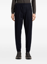 elasticated-waist wool trousers Highlights - Dark blue - Wool fabric - Elasticated waistband - Side pockets - Pressed centre crease Imported Composition Virgin Wool 100% Washing instructions Read Manufacturer Guidelines