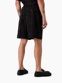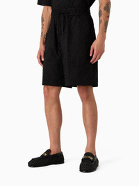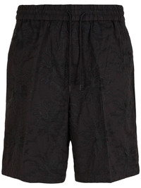 embroidered cotton track shorts Highlights - Black - Cotton - Embroidered design - Elasticated drawstring waistband - Two side slit pockets - Two rear welt pockets - Above-knee length Imported Composition Cotton 100%