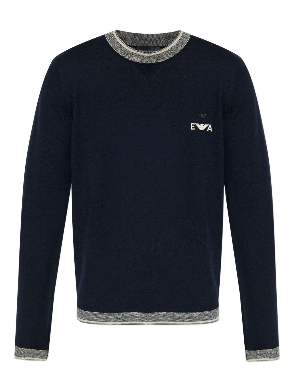 embroidered-logo wool sweater Highlights - Navy blue - Virgin wool - Embroidered logo - Ribbed crew neck - Grey ribbed trims - Long sleeves Imported Composition Virgin Wool 100% Washing instructions Read Manufacturer Guidelines