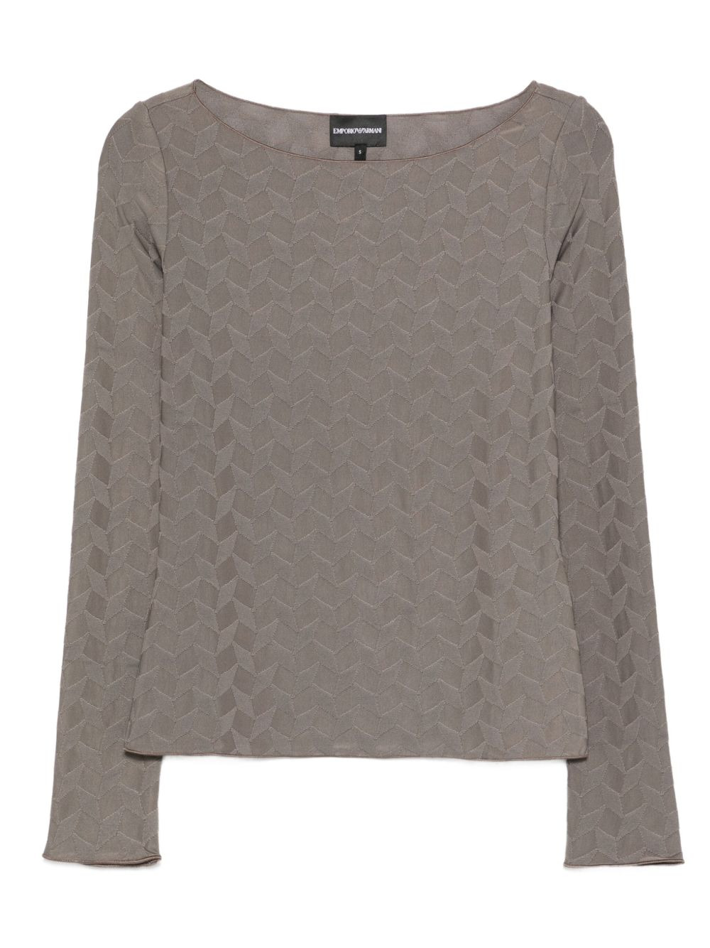 geometric-pattern long-sleeved blouse Highlights - Grey taupe - Geometric pattern - Long sleeves Imported Composition Polyamide 95%, Elastane 5% Washing instructions Machine Wash