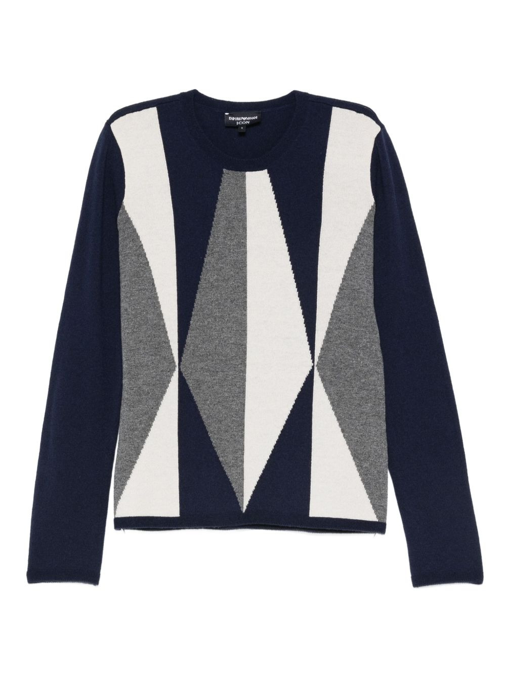 geometric-pattern sweater Highlights - Blue - Virgin wool blend - Geometric pattern - Long sleeves - Ribbed cuffs and hem Imported Composition Virgin Wool 90%, Cashmere 10% SIZE & FIT Model measurements Height 5 ft 11 in(1.8 m) Bust/Chest 31.49 in(80 cm) Hips 36.61 in(93 cm) Waist 24.4 in(62 cm) Washing instructions Read Manufacturer Guidelines