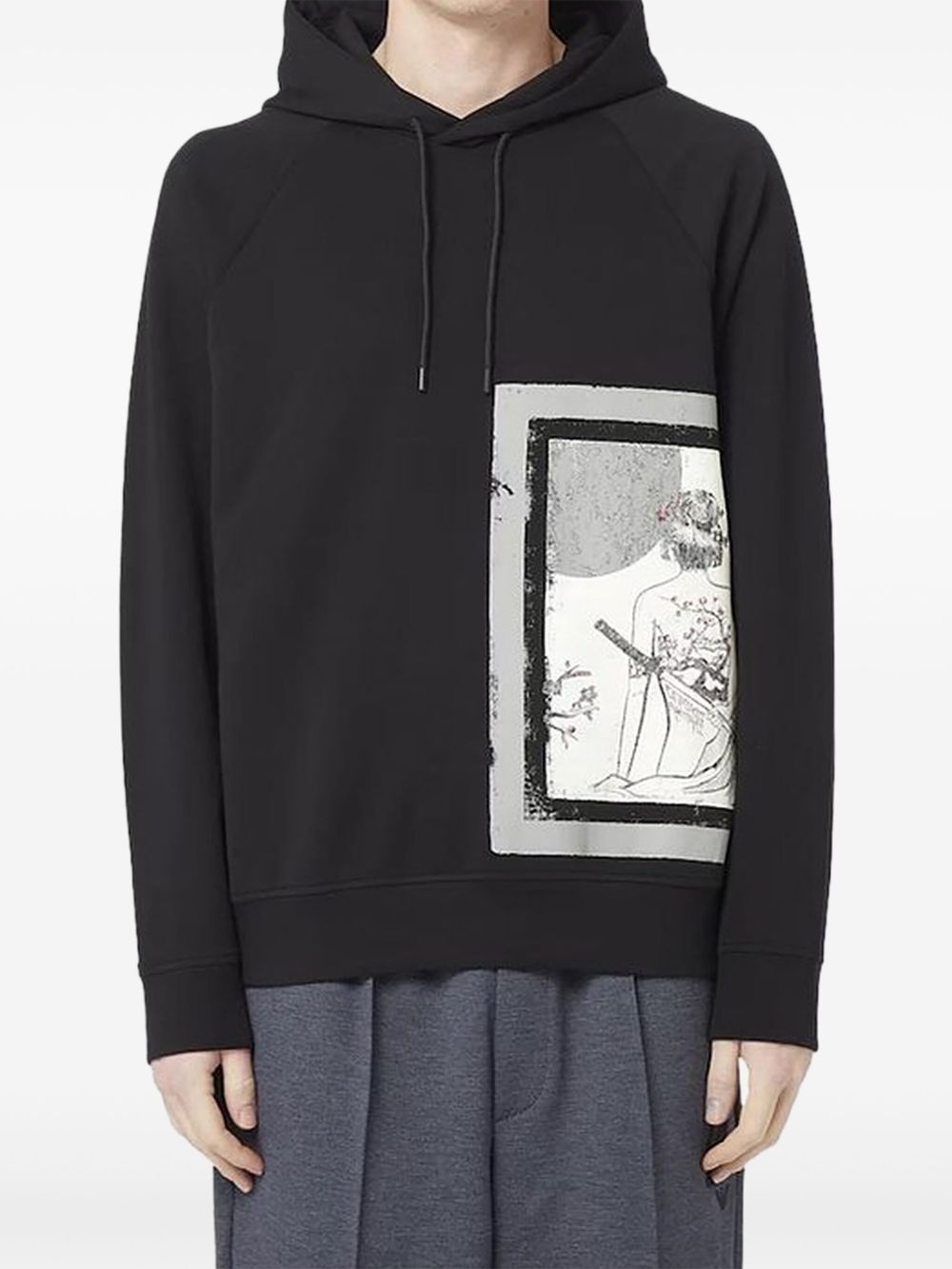 graphic-print hoodie Highlights - Black - Drawstring hood - Long raglan sleeves - Ribbed cuffs and hem Imported Composition Cotton 76%, Polyester 18%, Elastane 6%