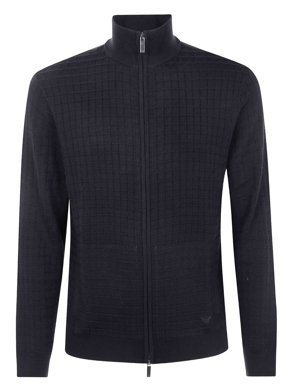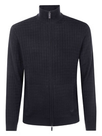 grid-pattern zip-up cardigan Highlights - Black - Grid pattern - Zip fastening - High neck - Long sleeves Imported Composition Acrylic 46%, Lyocell 34%, Wool 20% Washing instructions Read Manufacturer Guidelines