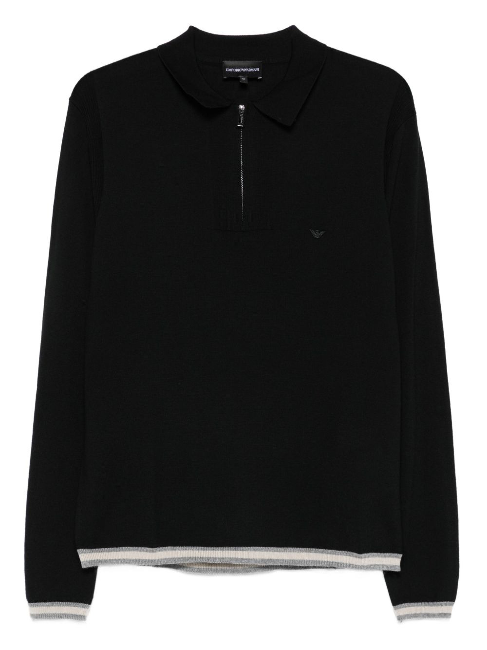 half-zip wool polo shirt Highlights - Black - Half-zip fastening - Long sleeves - Ribbed cuffs and hem - Logo-detail Imported Composition Virgin Wool 100% Washing instructions Dry Clean Only