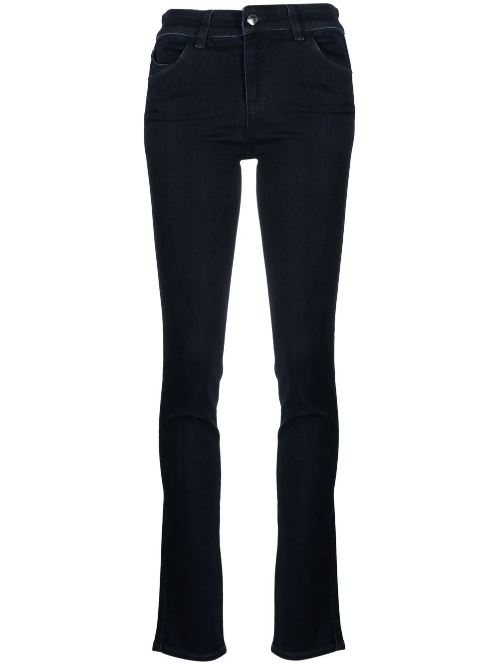 high-waisted slim-cut trousers indigo blue stretch-cotton slim cut belt loops front button and zip fastening classic five pockets Imported Composition Viscose 43%, Cotton 33%, Lyocell 17%, Polyester 5%, Spandex/Elastane 2% SIZE & FIT Model measurements Height 5 ft 10 in(1.78 m) Bust/Chest 31.49 in(80 cm) Hips 35.43 in(90 cm) Waist 24.4 in(62 cm) FittingInformation This piece fits true to size. We recommend you get your regular size Cut for a close fit Made with a mid-weight stretch fabric